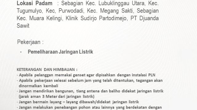 MUSI RAWAS , JS - SENIN, 24 Februari 2025 sekira Pukul 09.00 WIB s/d 12.00 WIB, akan ada...