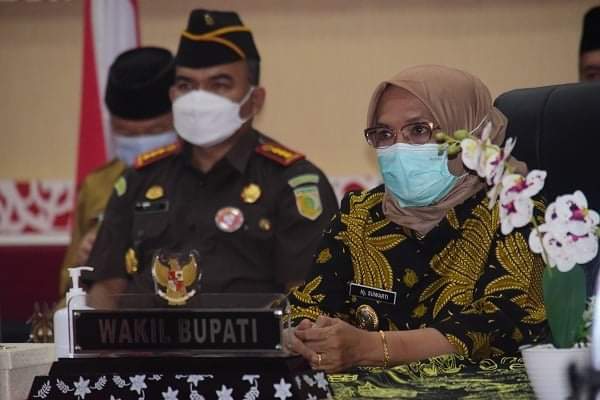 MUSI RAWAS,JS – WAKIL Bupati Musi Rawas Hj Suwarti ikuti Puncak Peringatan Hari Otonomi Daerah XXV Tahun 2021 melalui Video Conference di Auditorium Setda Kabupaten Musi Rawas, Senin (26/04/2021).